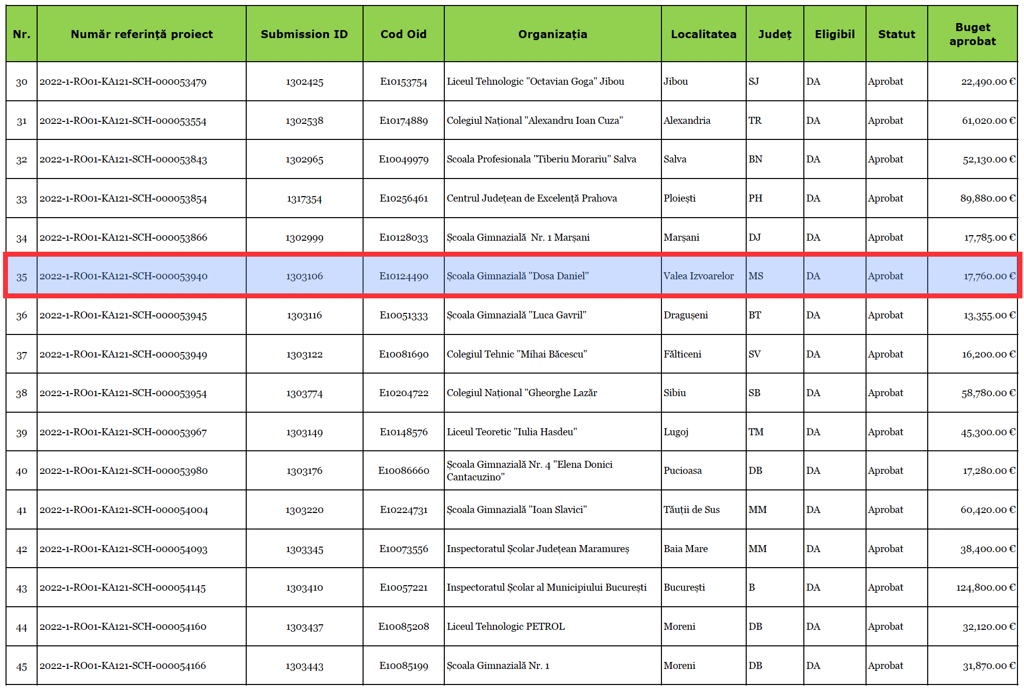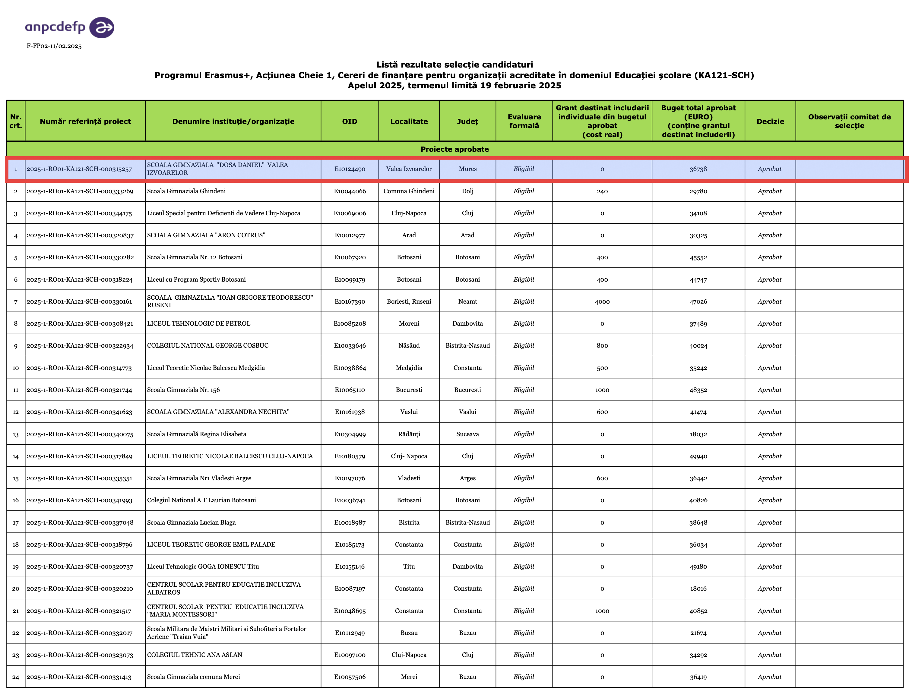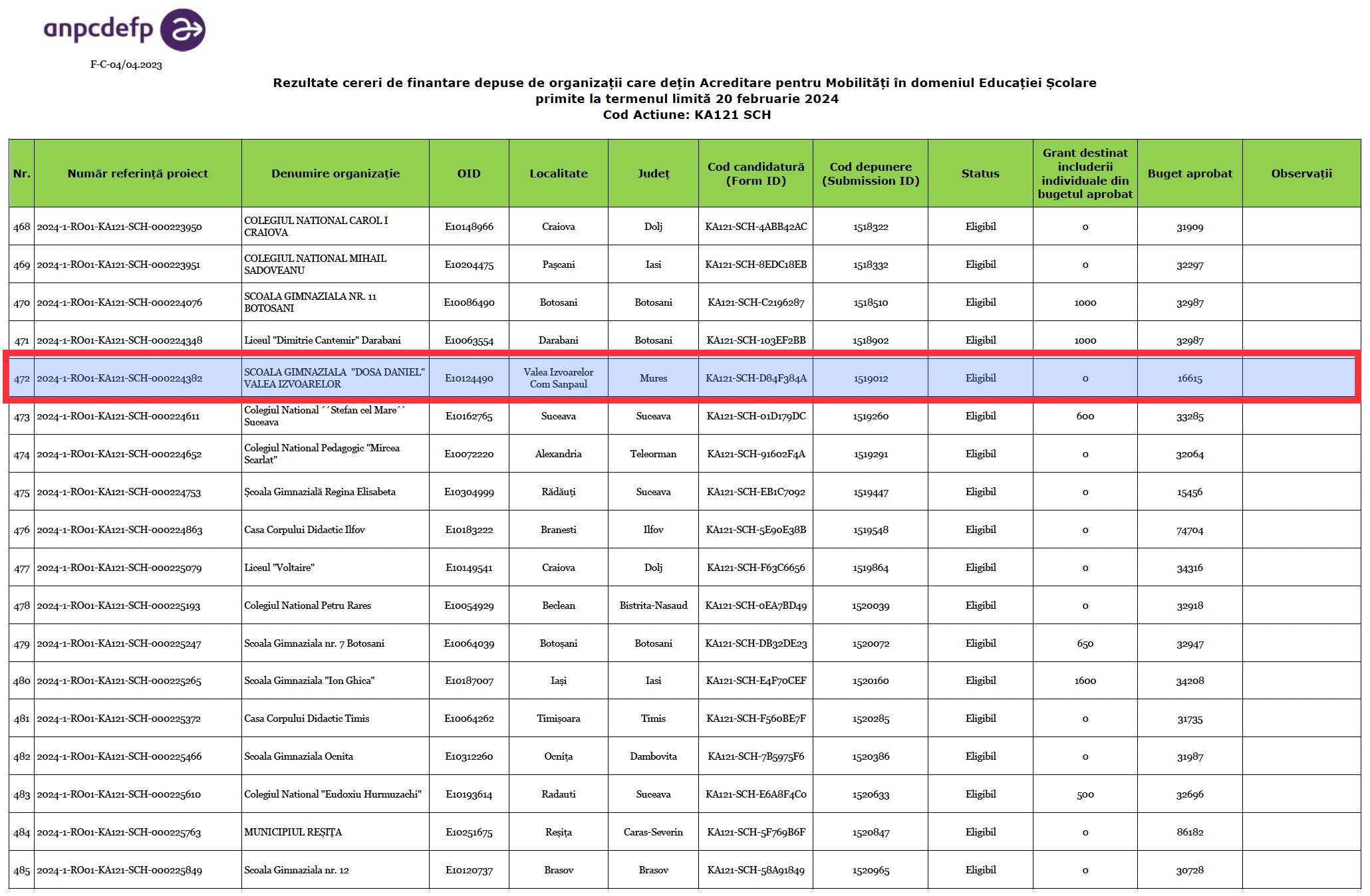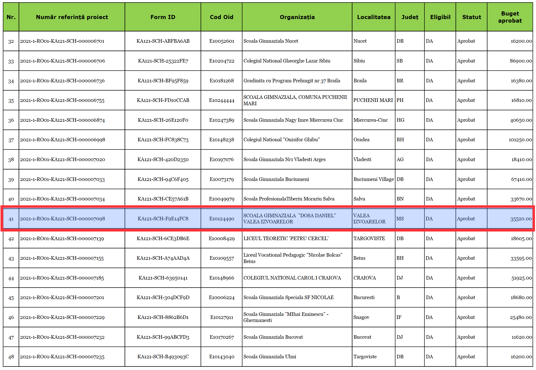 Prin Acreditarea Erasmus+, în perioada 2021-2017, Școala Gimnazială “Dósa Dániel” Valea Izvoarelor își propune să îndeplinească următoarele obiective: